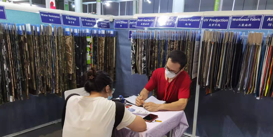 Oct. 9th~11th, Changshan showes new factional and design fabrics on the Intertextile Shanghai Fair, on the booth we showed cotton, poly/coton, cotton/nylon,poly/cotton/spandex, cotton/spandex, polyester fabrics with dyed, printed and W/R, teflon, antibacterial, UV proof, flame retardant finishing, more than 1,000 pcs of samples .